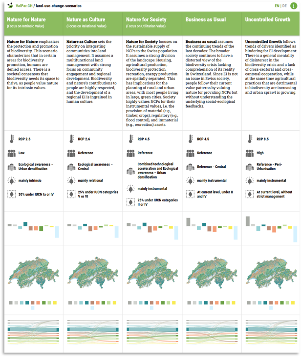 Wang, J. 2024 Mapping spatial pattern of changes in Nature’s Contributions to People under multiple scenarios in Switzerland, 2020-2060. Masters thesis. ETH Zürich.